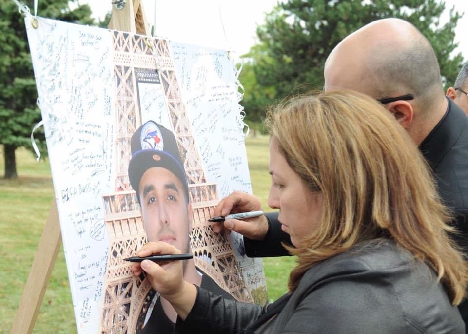 Zaid’s parents sent three homing pigeons to sky with messages for him. Everyone at the event wrote a message to Zaid on a big picture for him, then this picture was sent to sky .
