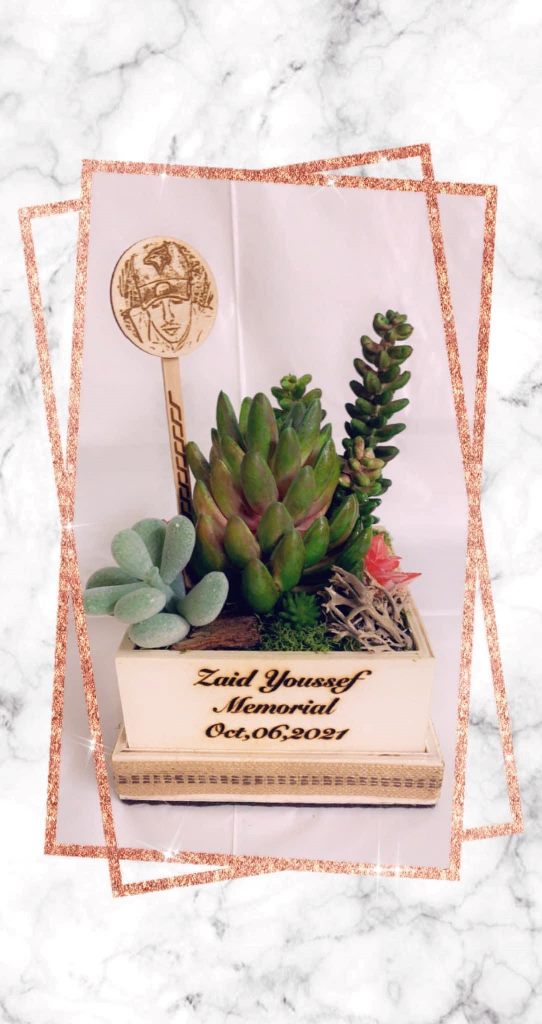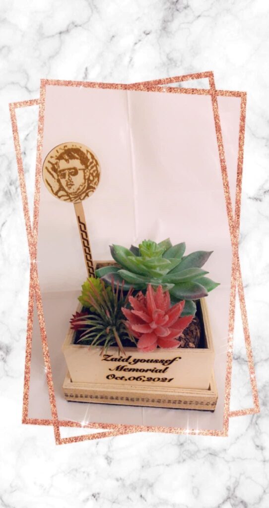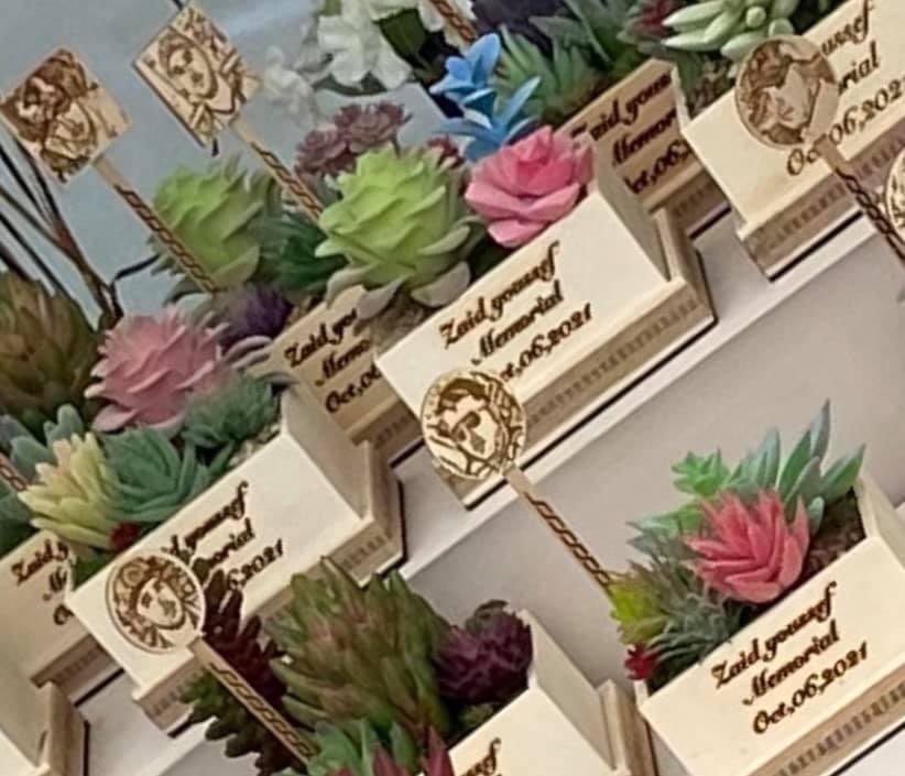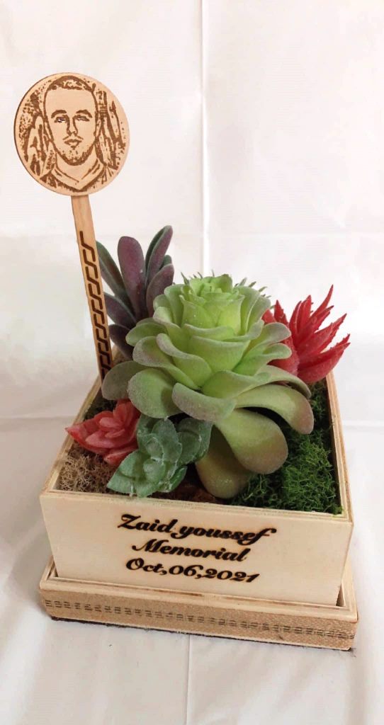 In honor of Zaid’s memory, his parents distributed small souvenirs designed and made by his mother and her friend, Suhair Shakarchi. It has Zaid’s photo as well as the date of his memory.